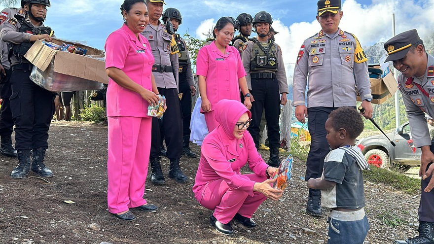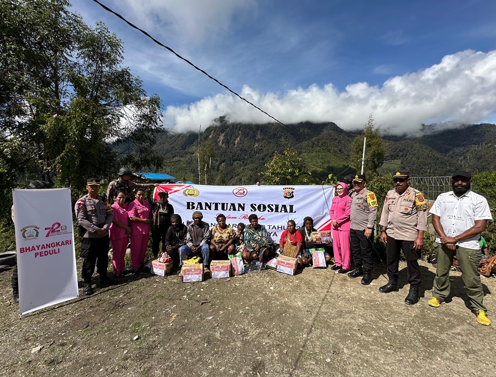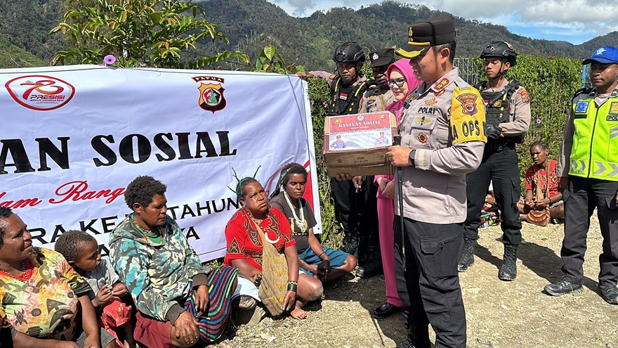 Polres Intan Jaya Salurkan Bansos di Sugapa Sambut HUT Bhayangkara ke-78