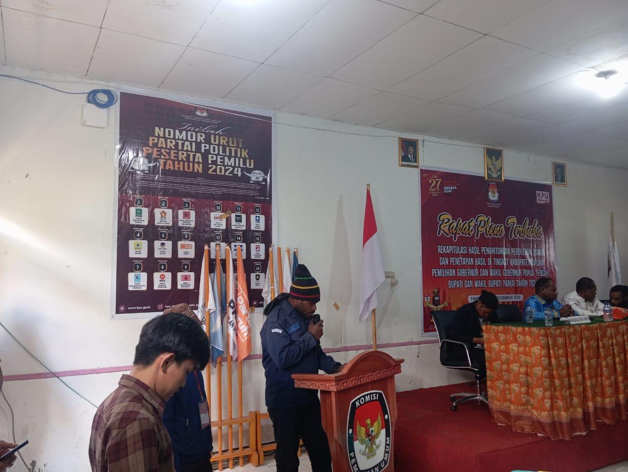Kapolres Paniai Kompol Deddy A.Puhiri, S.I.K., menegaskan pentingnya menjaga ketertiban selama proses pleno penghitungan suara berlangsung.