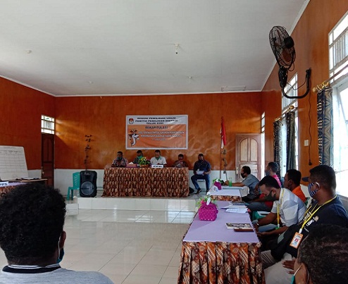 Nabire – Panitia Pemilihan Distrik (PPD) Distrik Teluk Kimi, kabupaten Nabire, melaksanakan rekapitulasi hasil verifikasi faktual dukungan bakal pasangan calon perseorangan, pemilihan Bupati dan Wakil Bupati Nabire, tahun 2020.