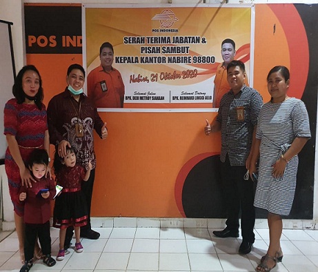 Acara serah terima jabatan Kepala Kantor Pos Nabire sesuai dengan Surat keputusan Direksi PT Pos Indonesia (Persero) Kepala Regional 11, surat Nomor 150/SDM-11/2/Rhs/092020 perihal Mutasi Karyawan.
