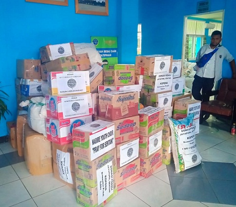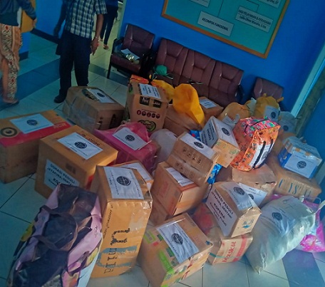 Adapun barang yang terkumpul yakni 48 koli pakaian layak pakai, 1 karung beras, 1 box sarden, 8 pack popok bayi, 3 box pembalut wanita, 14 box mie instan serta uang tunai sebanyak Rp. 42.629.000.-