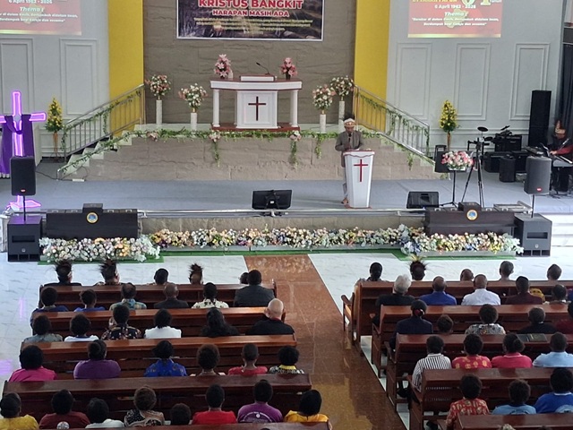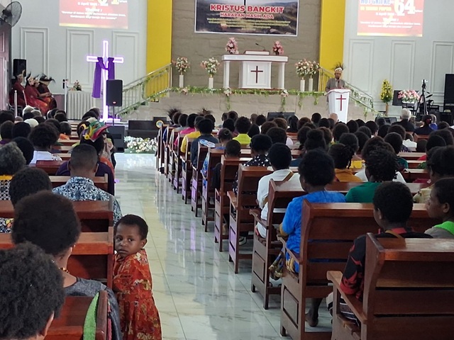 Nabire, 6 April 2026 – Ribuan jemaat Gereja Kemah Injil Indonesia (GKII) memadati Gereja GKII Getsemani SP3 Wadio dalam ibadah syukur Hari Ulang Tahun (HUT) Kemandirian GKII ke-64 di Tanah Papua yang berlangsung khidmat dan penuh sukacita, Senin (6/4/2026).