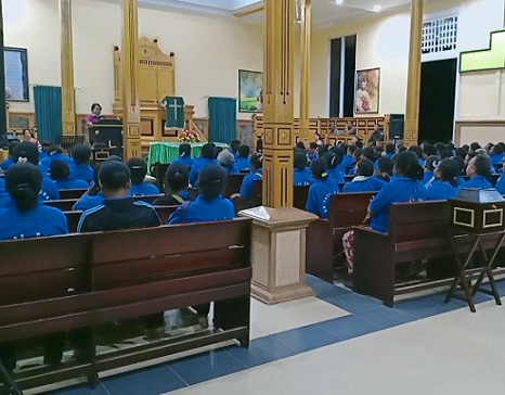 Usai disambut, rombongan PW Klasis Nabire Timur mengikuti ibadah singkat serta perkenalan di Gedung Gereja GPM Ambon.