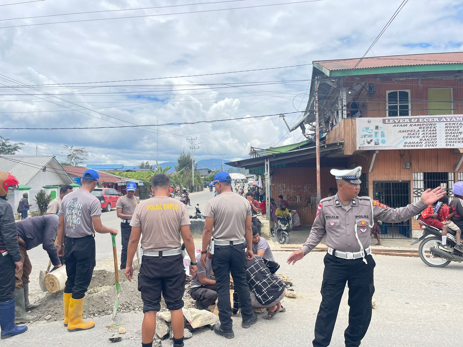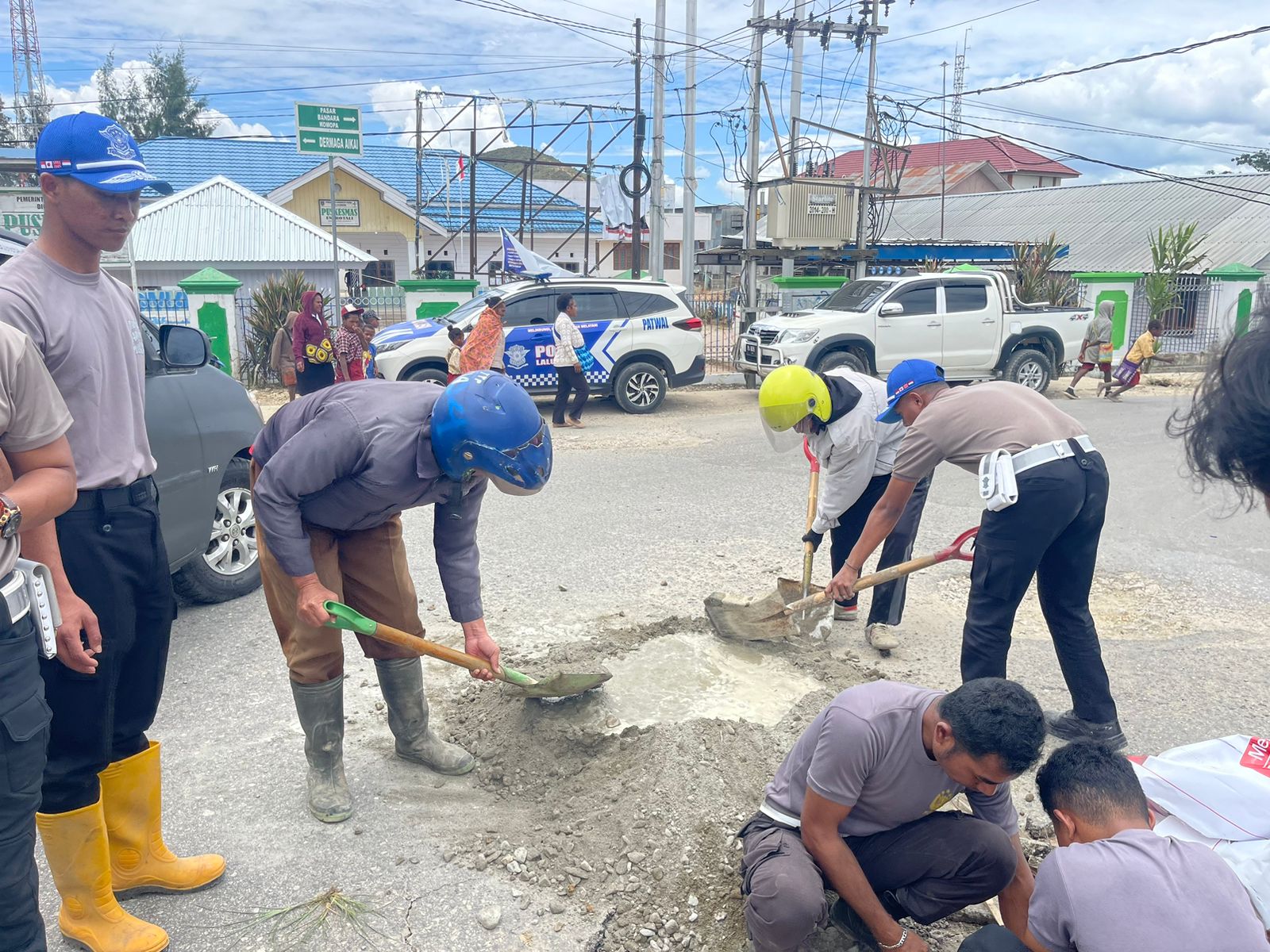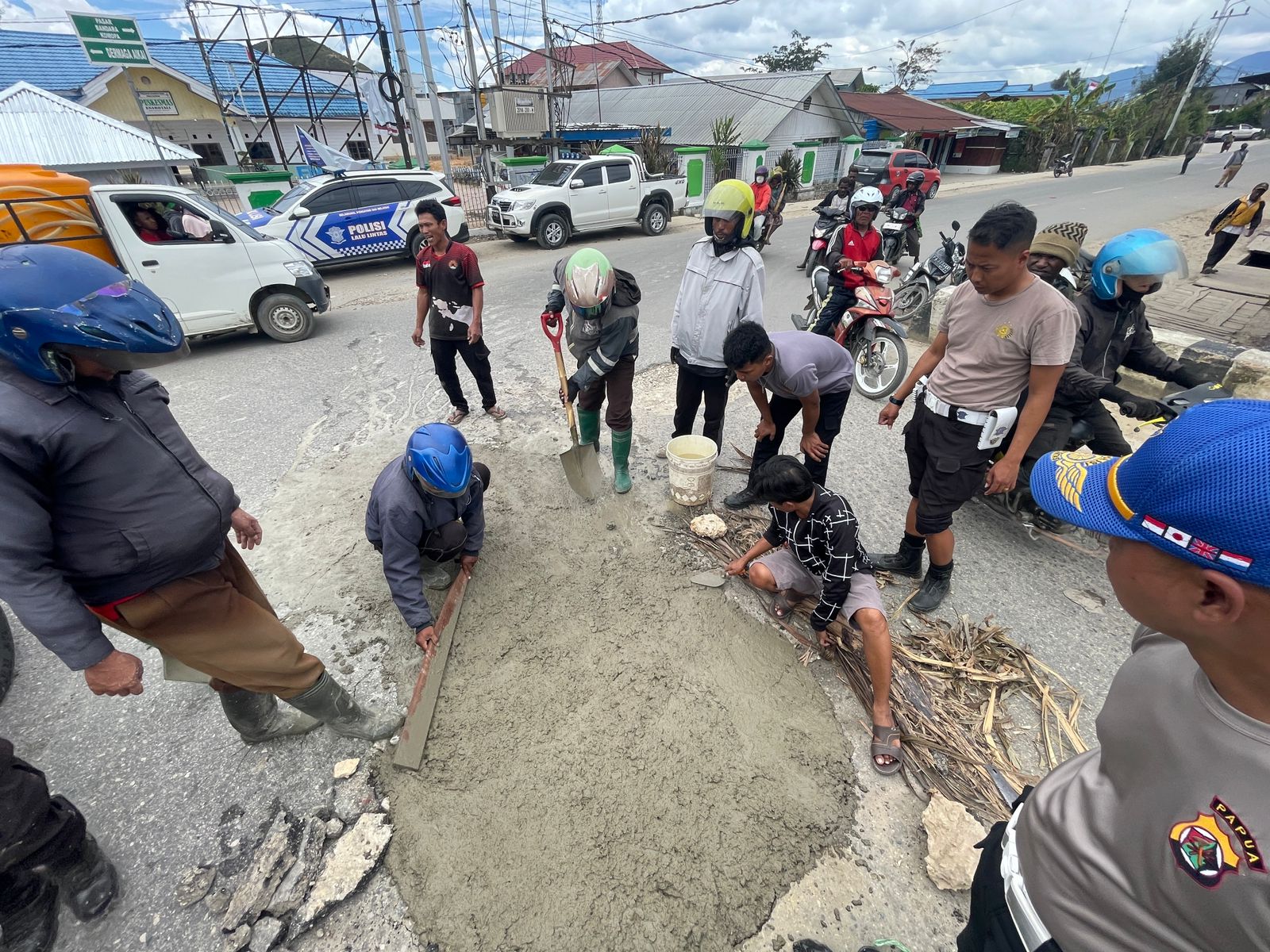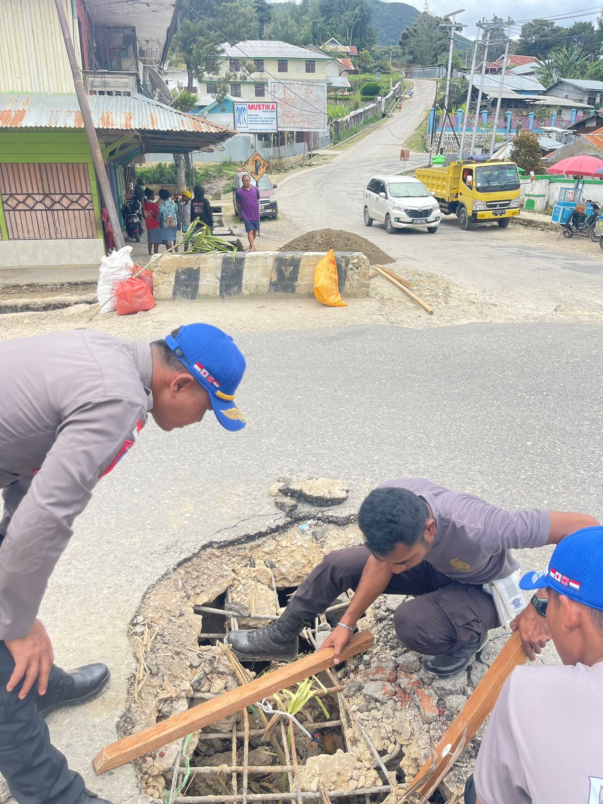 Seperti halnya yang dilakukan oleh Satuan Lalu lintas (Satlantas) Polres Paniai. Di sela kesibukannya melakukan pengaturan arus lalu lintas, Anggota Satlantas Polres Paniai, melakukan kegiatan gotong royong membantu menambal atau memperbaiki lubang jalan rusak yang berada di ruas jalan Pertigaan Kompas Enarotali, Distrik Paniai Timur, Kabupaten Paniai, Rabu (11/10/23).