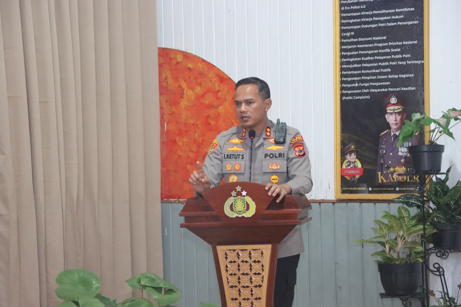 Selanjutnya Kapolres Nabire AKBP Ketut menyampaikan acara syukuran ini merupakan puncak dari rangkaian kegiatan hari lalu lintas Bhayangkara yang kita peringati bersama pada tanggal 22 september 2023 tahun ini.