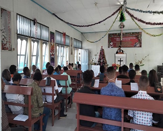 Ibadah sendiri dilaksanakan di Gereja Patmos Kompleks Lapas Kelas 2B Nabirem dan dipimpin oleh Pdt. M.Vin Werlianti, S.Th, dengan pembacaan Alkitab dari Lukas.2:7, Tema “Kelahiran Yesus.”