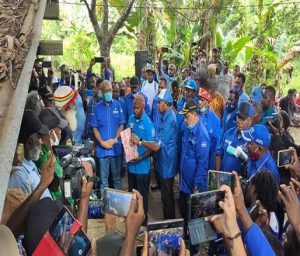 Kedatangan Sekretaris Wantim DPP Partai Demokrat, Carolus Bolly, SE, MM dan Wakil Ketua I DPD/Bupati Mamberamo Tengah, Ricky Ham Pagawak, S.H, M.Sim bersama rombongan dalam rangka penyerahan bantuan pembangunan rumah Adat Nusantara di Nabire.