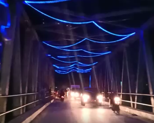 Di Jembatan Kalibobo nampak terlihat lampu natal yang dipasang di atas jembatan.