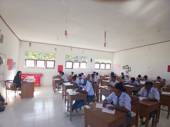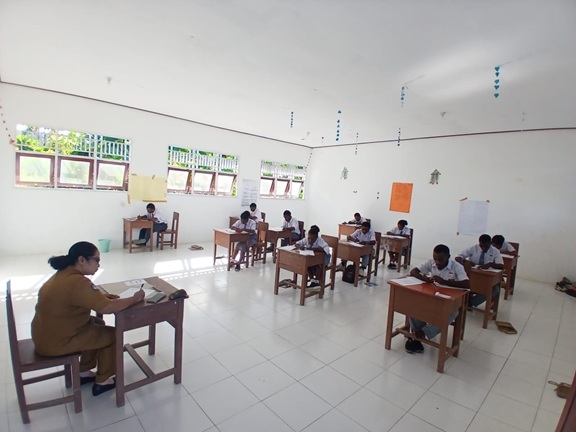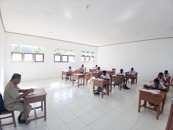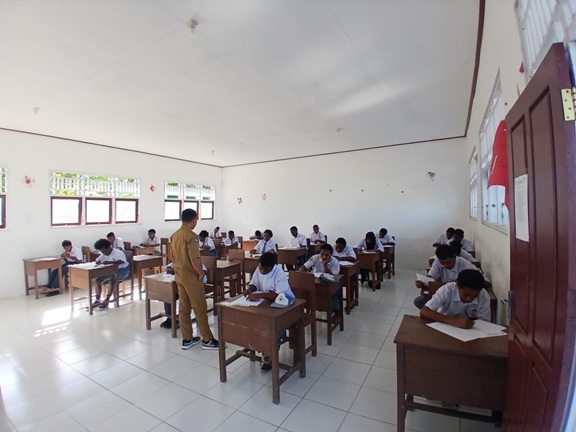 Pelaksanaan UAS dimulai setiap hari pukul 08.00 WIT dengan pengawasan ketat dari para guru. Seluruh ruang ujian telah dipersiapkan sebelumnya, termasuk pengaturan tempat duduk, daftar hadir peserta, serta distribusi naskah soal untuk memastikan proses ujian berjalan tertib dan lancar.