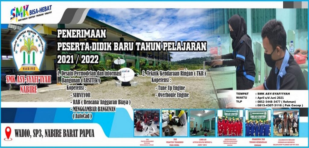 Mengawali tahun ajaran 2021/2022, SMK Asy-Syafi’iyah Nabire membuka pendaftaran siswa baru dengan menyodorkan 2 (dua) program keahlian, masing-masing :