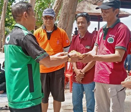 Kemudian srikandi RAPI Nabire menyerahkan potongan tumpeng kepada sesepuh RAPI, Bapak Badrun dan juga Kepada Perwakilan anak-anak Komunitas Motor CB.
