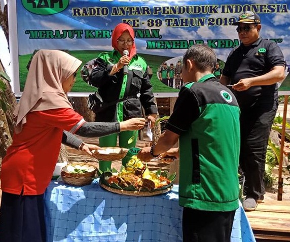 Usai sambutan, acara dilanjutkan pemotongan tumpeng oleh Ketua RAPI Wilayah 07 Nabire, Pak Teguh Sumaryono, yang diserahkan kepada 3 tamu kehormatan yaitu Kepala Dinas Sosial Nabire, Bapak Ishak, lalu kepada Bapak Jerry Katuuk (YC8BJK) dari ORARI Sulawesi Portabel area Nine, dan kepada anggota RAPI dari Region 24 Sulawesi Selatan (JZ24AWE).