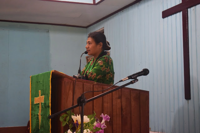 Ibadah ini dilayani pelayan firman Pnt. Martha Noriwari, dan bahan renungan pada ibadah terambil dari Kitab Mazmur 136:1-26 dengan nats “Kasih Setia Allah Kepada Orang Israel”.