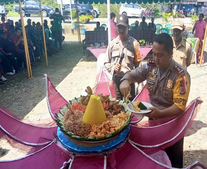Acara dilanjutkan dengan pemotongan pita oleh Kapolres, dilanjutkan penandatangan prasasti dan pemotongan nasi tumpeng.