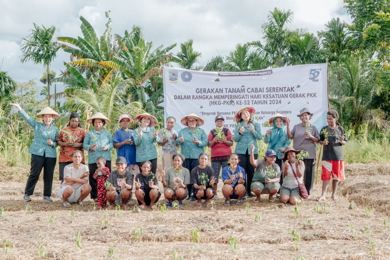 Gerakan Tanam Cabai yang melibatkan para petani ini merupakan rangkaian Hari Kesatuan Gerak PKK ke-52 Tahun 2024 yang diinisiasi oleh TP-PKK Pusat dengan melibatkan seluruh TP-PKK Provinisi dan Kabupaten/Kota Se-Indonesia secara serentak dengan tema “Bergerak Bersama PKK, mewujudkan Keluarga Sejahtera Menuju Indonesia Maju”. Makna “Bergerak Bersama” mengandung arti keserempakan gerak Kader PKK sebagai Mitra Pemerintah dan bekerjasama dengan berbagai pemangku kepentingan untuk mewujudkan kesejahteraan keluarga rakyat Indonesia khususnya di Provinsi Papua Tengah.