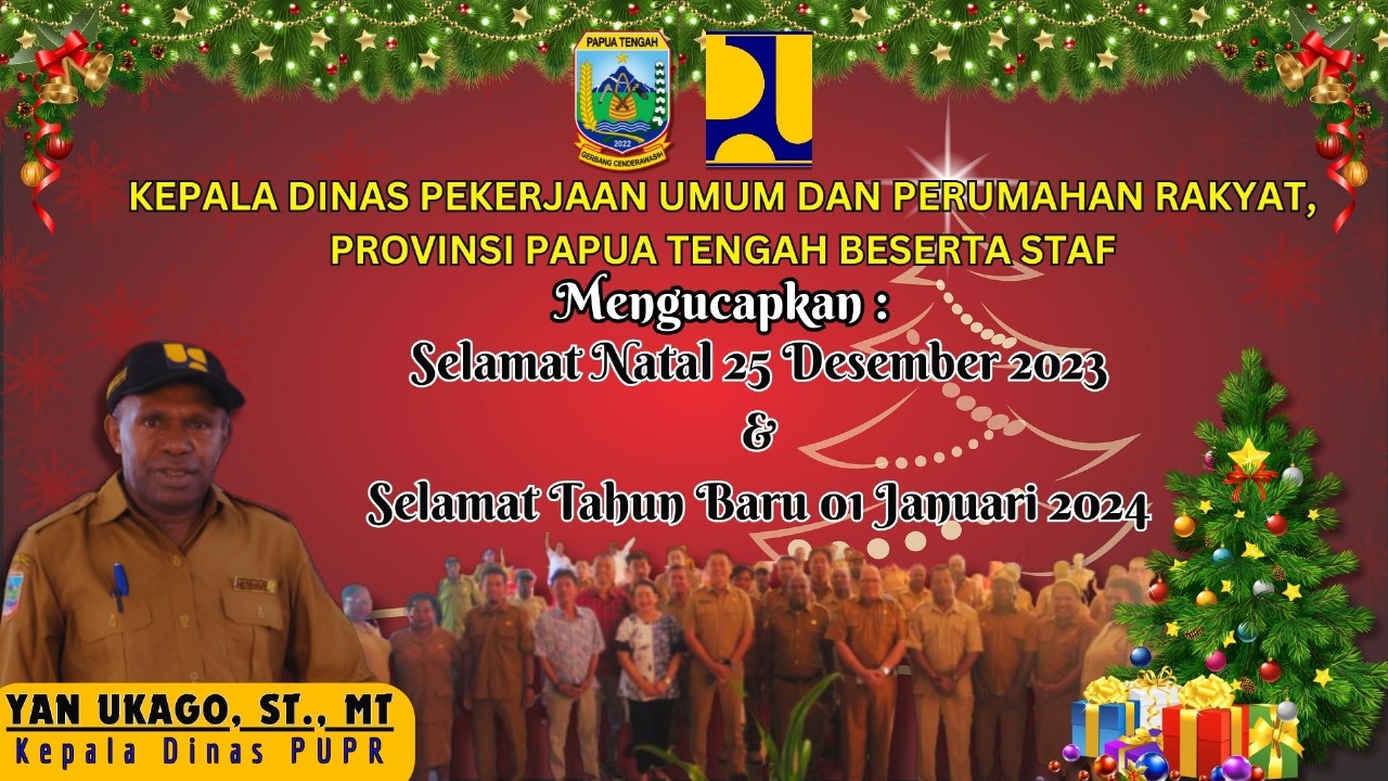 INFO NABIRE INFO PAPUA TENGAH Home » Blog » Ucapan Selamat Natal 2023 dan Tahun Baru 2024 dari Dinas PUPR Provinsi Papua Tengah Ucapan Selamat Natal 2023 dan Tahun Baru 2024 dari Dinas PUPR Provinsi Papua Tengah 24 December, 2023 21:04 NABIRENET Share Dinas PUPR Provinsi Papua Tengah Natal 2023 Tahun Baru 2024 Share