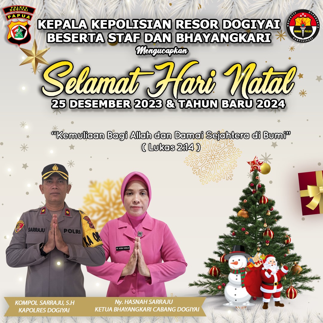 INFO PAPUA TENGAH Home » Blog » Ucapan Selamat Natal 2023 dan Tahun Baru 2024 dari Kapolres Dogiyai Ucapan Selamat Natal 2023 dan Tahun Baru 2024 dari Kapolres Dogiyai 24 December, 2023 21:15 NABIRENET Share Kapolres Dogiyai Natal 2023 Polres Dogiyai Tahun Baru 2024 Share