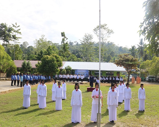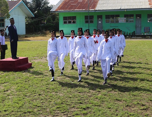 Nabire, Peringatan Hari Amal Bhakti Kantor Kementerian Agama Republik Indonesia yang ke-77, diperingati dalam suatu upacara bendera bertempat di halaman sekolah Asy Syafi’iyah, Kali Harapan, Nabire, Papua Tengah, Selasa (03/01/2023).