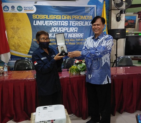 Penyerahan penghargaan tersebut dilakukan oleh Direktur UT-Jayapura, Drs. Mujadi, M.Pd, di sela sela kegiatan Sosialisasi dan Promosi UPBJJ-UT Jayapura, di kabupaten Nabire.