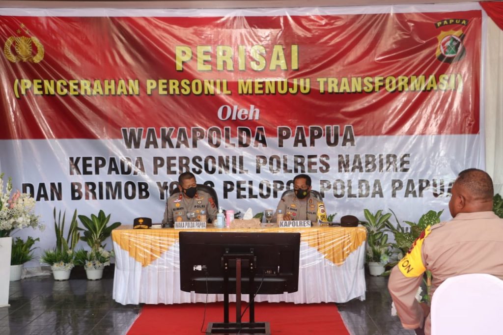 Dalam kunjungannya, Wakapolda melaksanakan tatap muka dengan personil Polres Nabire, Rabu (16/06/21), di Mapolres Nabire.