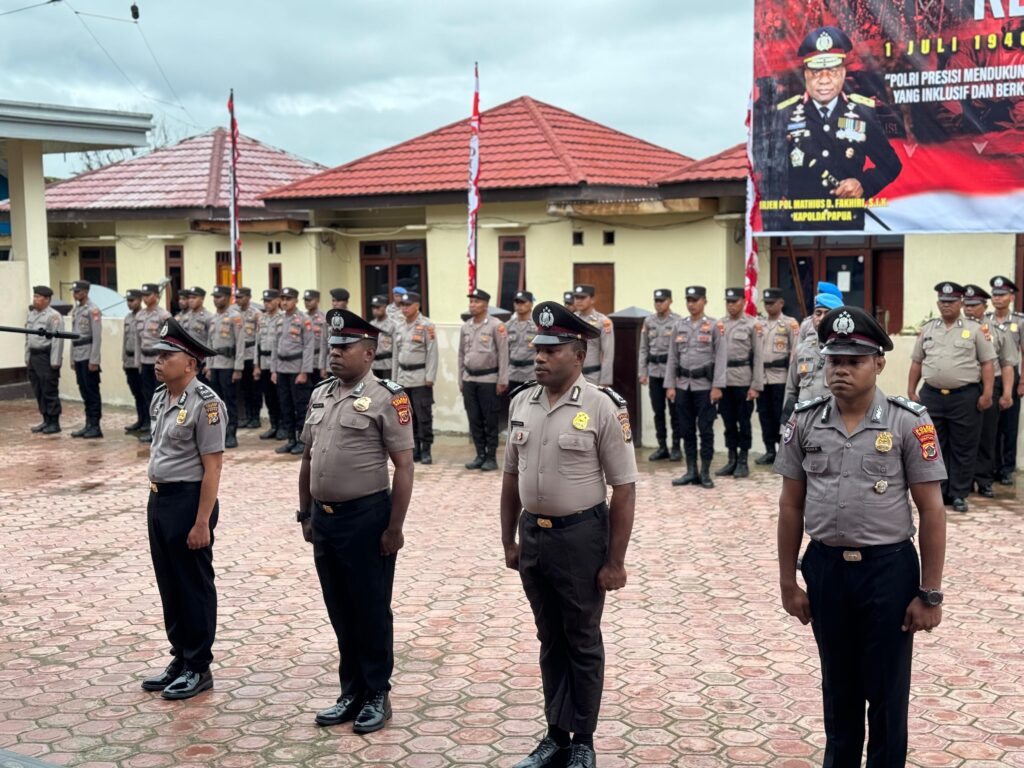 Kapolres Dogiyai Kompol Sarraju, SH, dalam sambutannya yang dibacakan oleh Wakapolres Dogiyai AKP Muh. Tahir, menekankan bahwa kenaikan pangkat dalam organisasi Polri bukanlah hak otomatis bagi setiap personel, melainkan hasil dari penilaian yang selektif berdasarkan prestasi kerja, integritas, serta dedikasi yang tinggi.