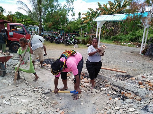 Empat hari pasca kebakaran, warga jemaat Gereja Santo Antonius Bumi Wonorejo Nabire, melakukan kegiatan kerja bakti pembersihan puing-puing bangunan bekas kebakaran yang dilaksanakan sejak rabu kemarin hingga hari ini (29/12).
