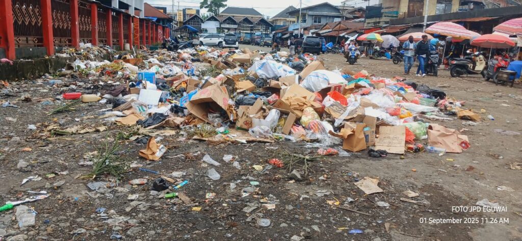 Nabire, 2 September 2025 – Pemandangan memprihatinkan kembali terlihat di Pasar Oyehe, Distrik Nabire Kota, Kabupaten Nabire, Papua Tengah. Tumpukan sampah plastik dan limbah lainnya menggunung, menebarkan aroma busuk yang menyengat di pusat perekonomian kota ini.