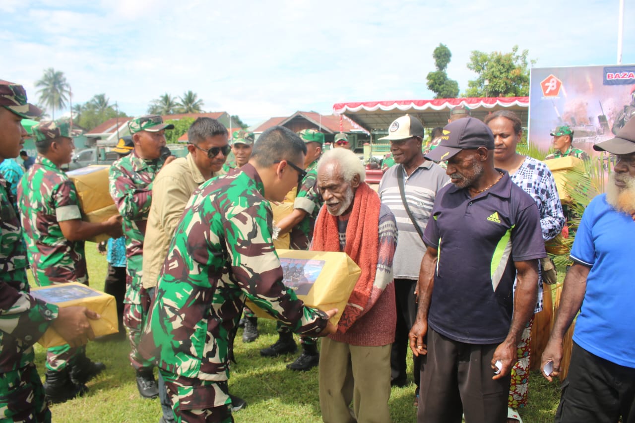 Nabire, Warga Nabire antusias menyambut Bakti Sosial Bazaar dan Pasar Murah dalam rangka memperingati HUT TNI ke-78, yang dilaksanakan di Kodim 1705/Nabire, Sabtu (07/10/2023).