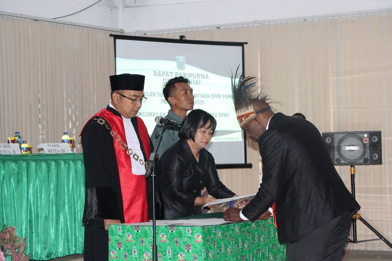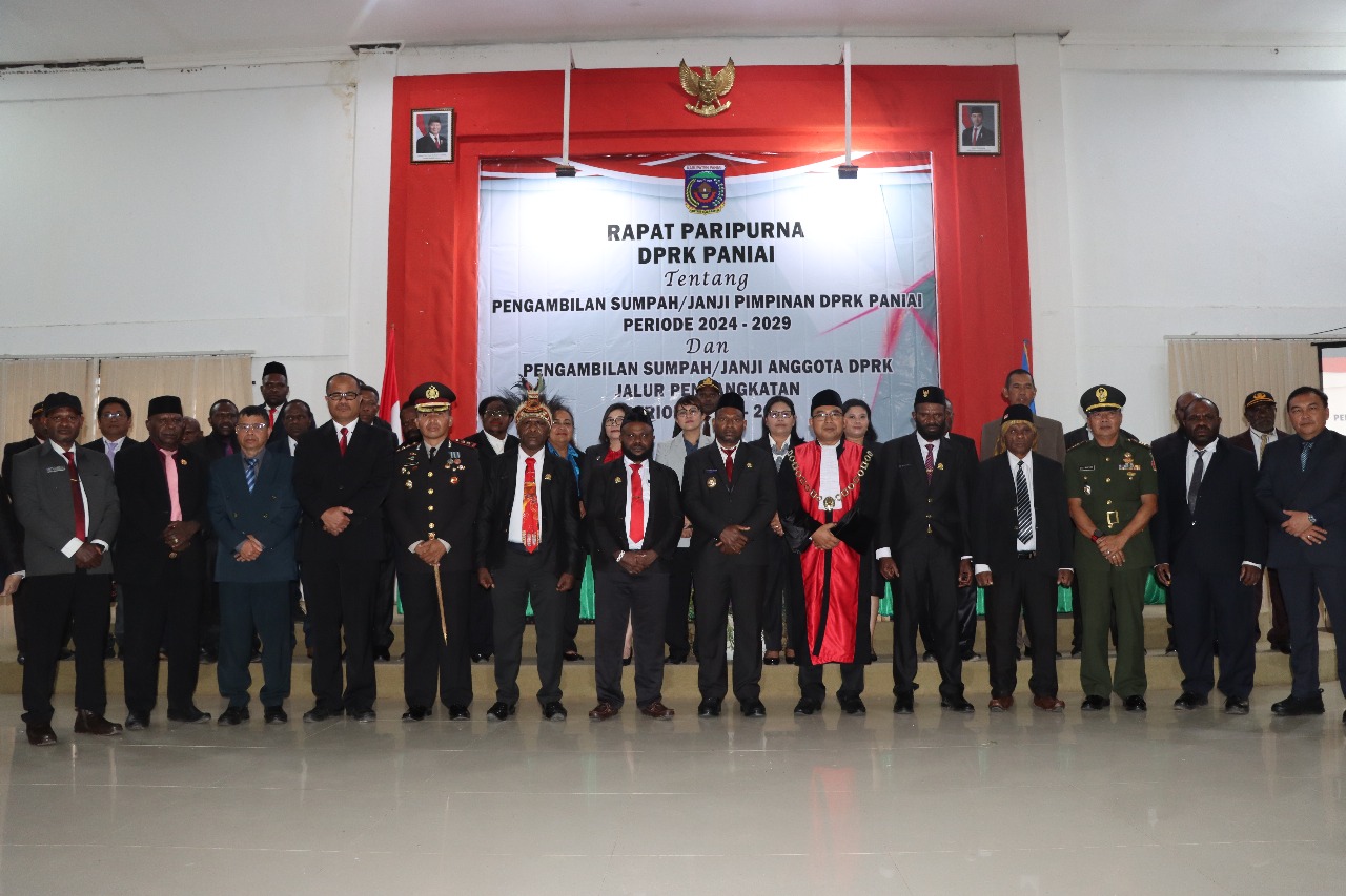 Paniai, 20 September 2025 – Sebanyak 28 anggota Dewan Perwakilan Rakyat Kabupaten (DPRK) Paniai resmi mengucapkan sumpah/janji dalam sidang pelantikan yang digelar pada Jumat (19/9/2025) pukul 10.00 WIT. Prosesi penuh khidmat ini menandai dimulainya masa tugas baru DPRK Paniai dalam mengemban amanah rakyat.