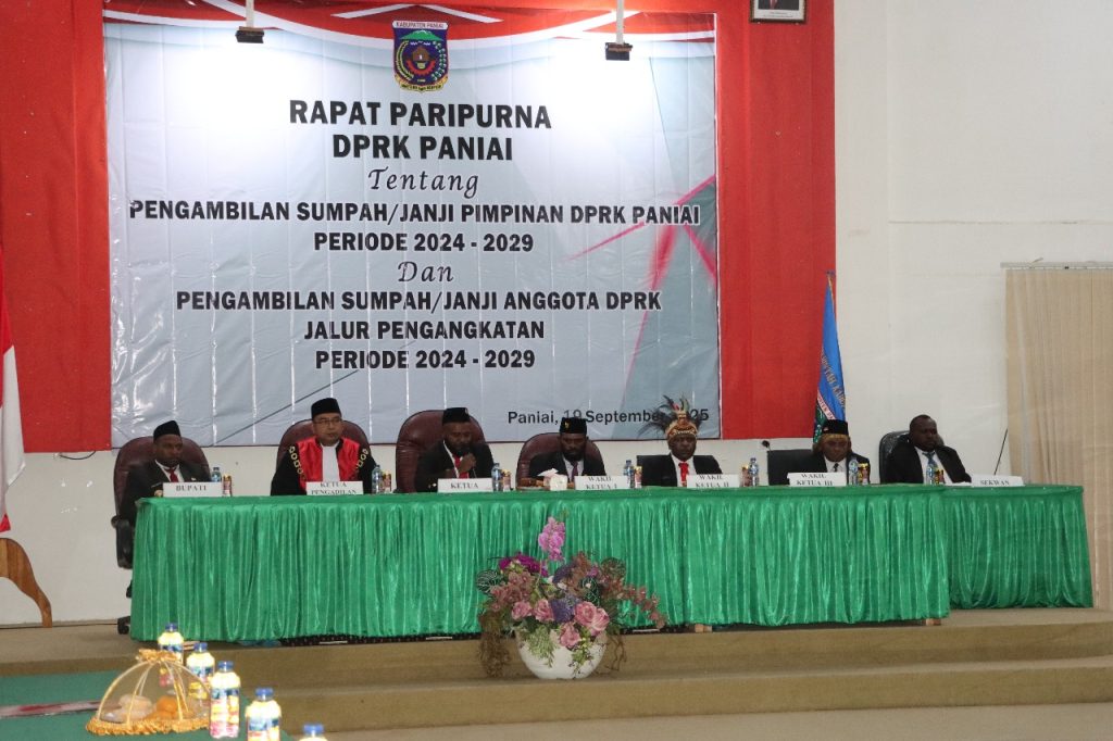 Paniai, 20 September 2025 – Sebanyak 28 anggota Dewan Perwakilan Rakyat Kabupaten (DPRK) Paniai resmi mengucapkan sumpah/janji dalam sidang pelantikan yang digelar pada Jumat (19/9/2025) pukul 10.00 WIT. Prosesi penuh khidmat ini menandai dimulainya masa tugas baru DPRK Paniai dalam mengemban amanah rakyat.