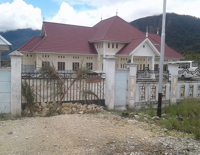 Kantor Badan Perencanaan Pembangunan Daerah kabupaten Deiyai, dipalang oleh para tenaga honorer yang menuntut pembayaran hak mereka yang belum dibayarkan dari bulan januari hingga mei 2017.