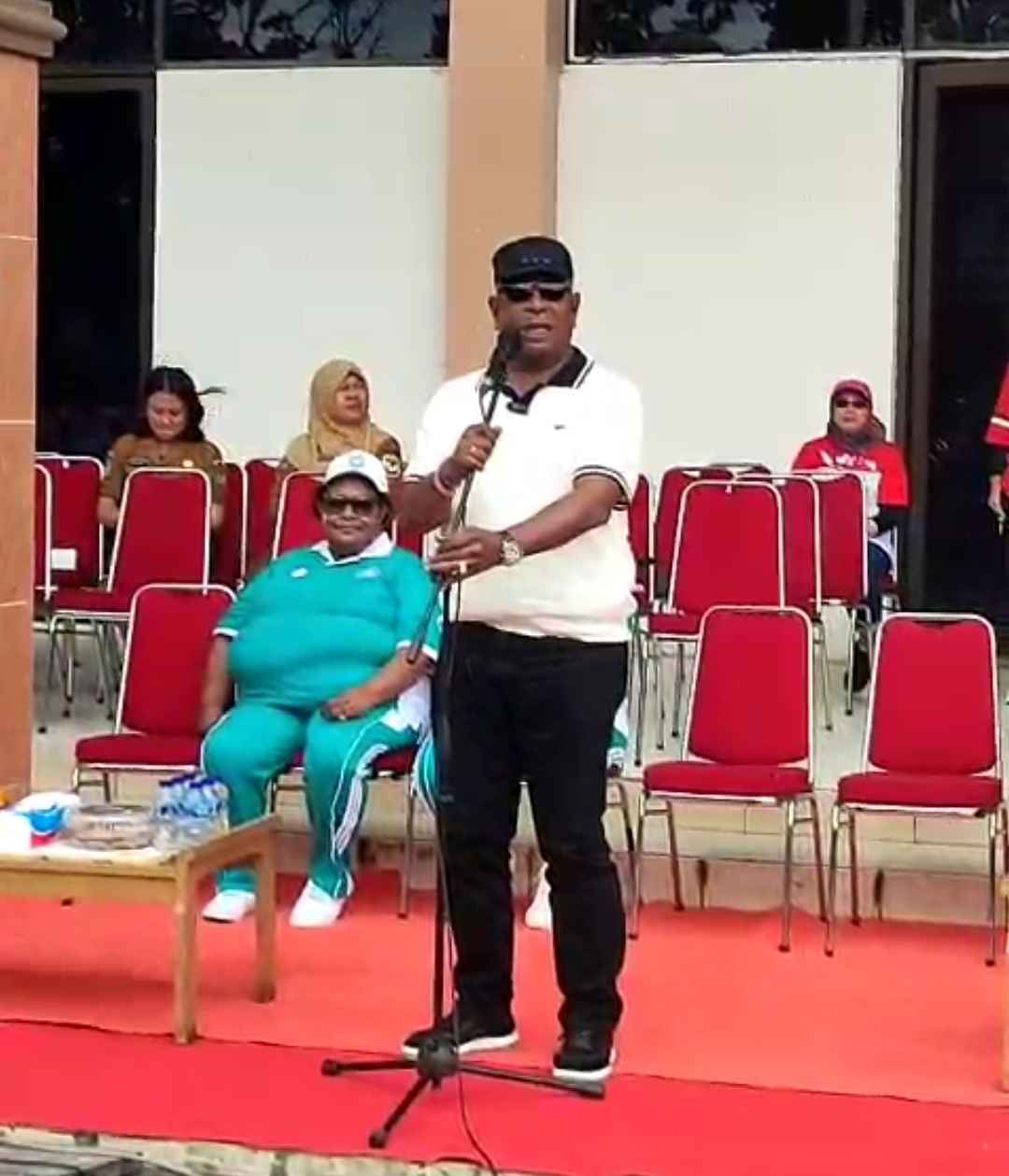 Bupati Mimika menyampaikan apresiasi kepada seluruh organisasi yang ikut sebagai peserta lomba gerak jalan indah.