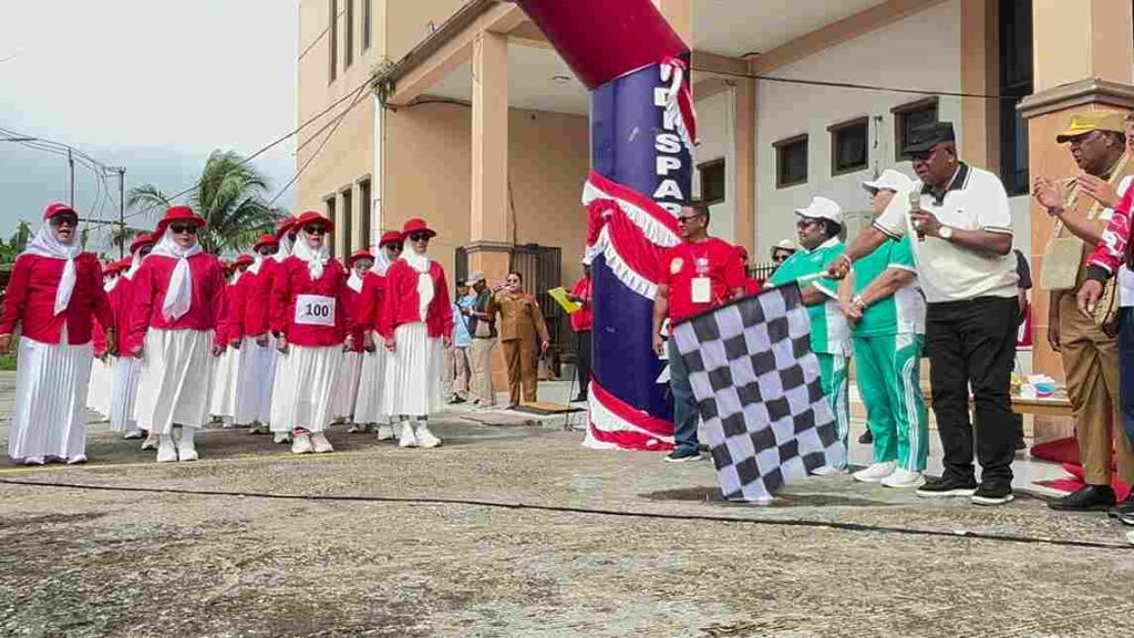 Mimika, 11 Agustus 2025 – Bupati Mimika, Johannes Rettob, secara resmi melepas 65 grup peserta gerak jalan indah wanita dalam rangka menyambut HUT ke-80 Republik Indonesia (RI) tahun 2025 di Halaman Gedung Eme Neme Yauware, Senin (11/8/2025).