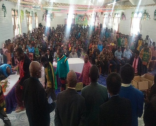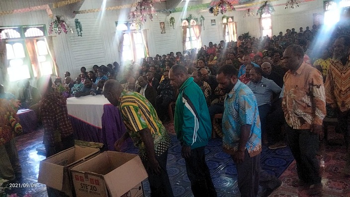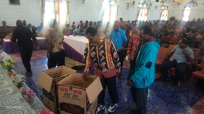 Paniai, Badan Pengurus Harian Klasis Aga Barat, kabupaten Paniai, dalam doa bulanan melaksanakan aksi Ebamukai atau pengumpulan dana untuk pembangunan rumah pastori, kamis (09/09/21).