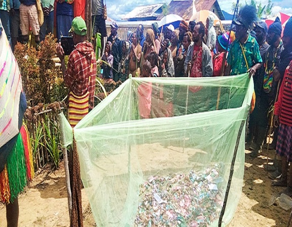 Paniai, Dalam rangka pembangunan gedung Gereja Paroki Kristus Sang Gembala Wedaumamo, Distrik Kebo, kabupaten Paniai, warga jemaat melakukan aksi penggalangan dana atau bisa disebut Ebamukai.