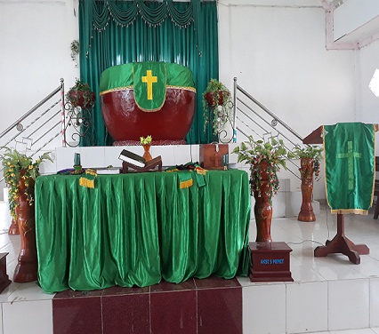 Selain itu, mimbar untuk pendeta berbentuk sempe atau gerabah. Nilai filosofinya yakni di luar ada tempat untuk menyimpan tepung sagu, kemudian tepung sagunya dibawa ke dalam kemudian diolah menjadi papeda lalu dibagi rata ke jemaat.
