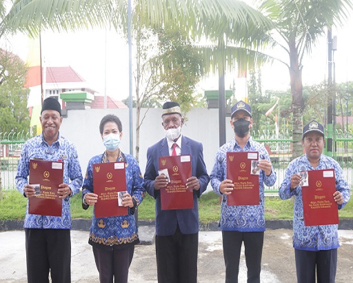 Kegiatan dilanjutkan dengan penyerahan Satya Lancana kepada 17 orang ASN diantaranya 4 Perak kepada mereka yang sudah memenuhi 20 tahun keatas masa kerjanya dan Perunggu kepada mereka 13 orang ASN yang masa kerjanya sudah memenuhi 10 tahun keatas masa kerjanya.
