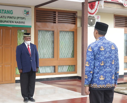 Dalam Apel tersebut, Kepala Kantor Kementerian Agama Kabupaten Nabire, Yafeth Iyai. S.Th bertindak langsung sebagai Pembina Apel.