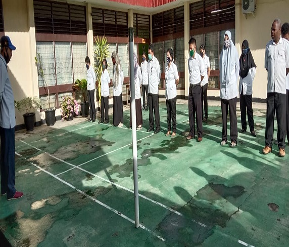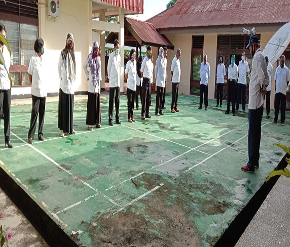Pelaksanaan apel bersama, dilaksanakan di halaman Kantor Kemenag Nabire, dipimpin Kepala Seksi Pendidikan Islam, H.Bahar, S.PdI, selaku pembina apel.