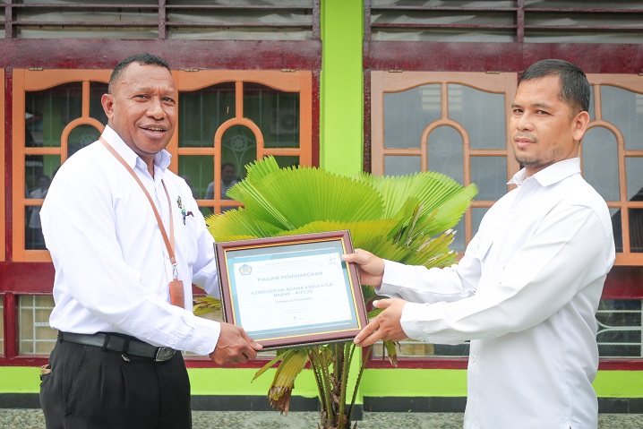 Apel Pagi dilanjutkan dengan penyerahan piagam IPA (Indikator Kinerja Pelaksanaan Anggaran) tahun 2022 terbaik pertama untuk Pagu kecil se-wilayah KPPN Nabire yang diterima langsung oleh Jorentah Taringan,SE., selaku Pengelola Keuangan pada Kemenag Nabire.
