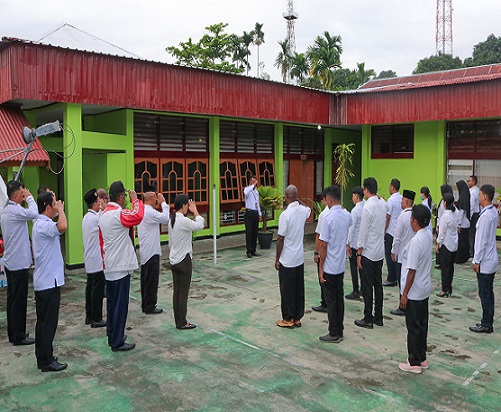 Bertindak selaku Pembina Apel Pagi, Kepala Sub Bagian Tata Usaha, Robert Wopairi, S.Th.