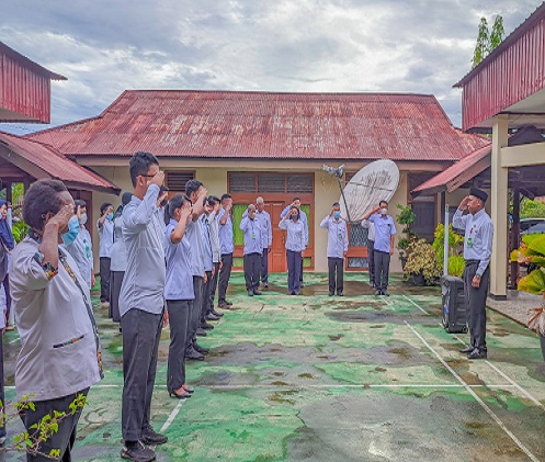 Apel diakhiri dengan Doa Oleh Pramubhakti Daniel Serafin Ruatakurei, S.Th. Apel pagi diikuti oleh para pejabat pengawas, PNS dan Pramubakti Berlangsung aman dan lancar.