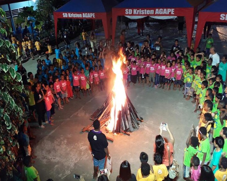Rangkaian acara Camping Paskah dalam rangka memperingati Hari Paskah tahun 2017 kemudian ditutup dengan pelaksanaan api unggun di halaman sekolah SD Kristen Agape Terpadu Nabire.
