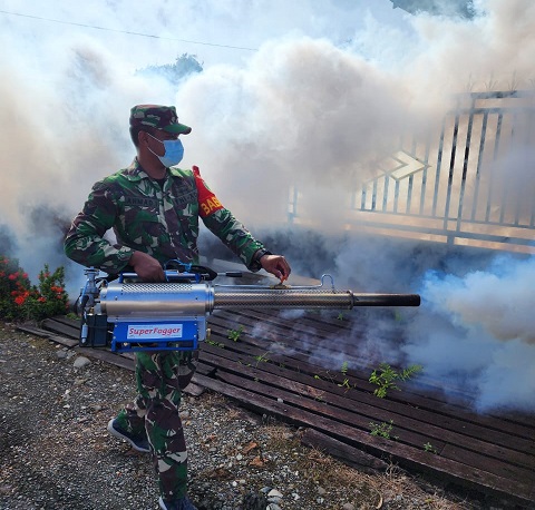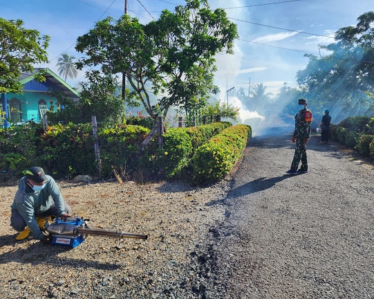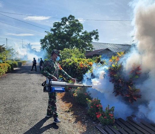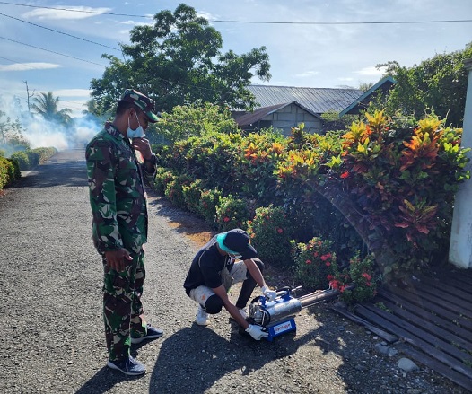 Nabire, Guna mencegah berkembangnya kasus demam berdarah di wilayah binaan, Babinsa Koramil 1705-01/Nabire, Serka Ahmad Iriyanto, mendukung pelaksanaan Fogging dari Dinkes Kabupaten Nabire di RT 13/RW 01, Kampung Wadio, Kabupaten Nabire, Provinsi Papua Tengah.