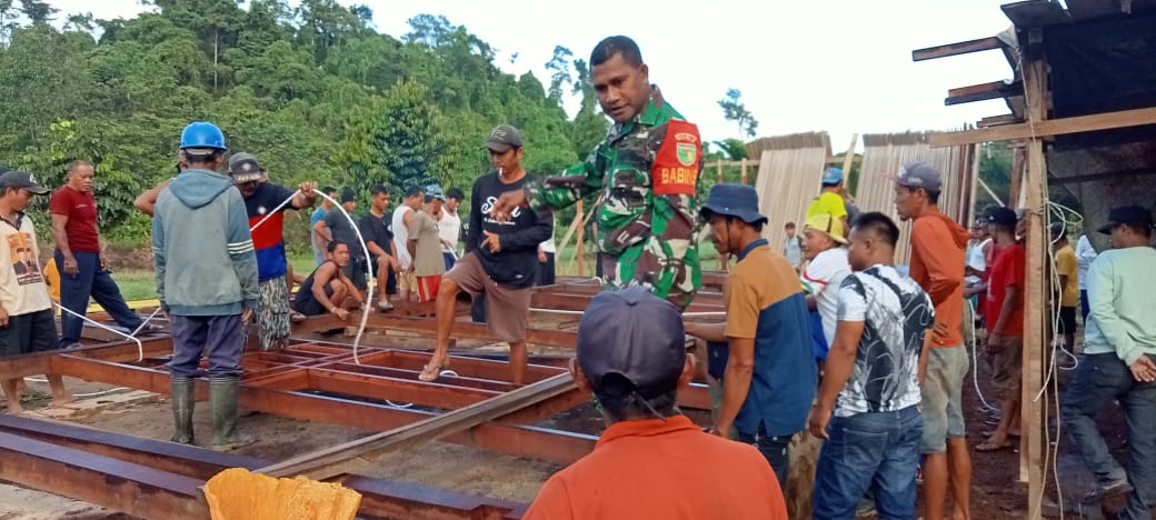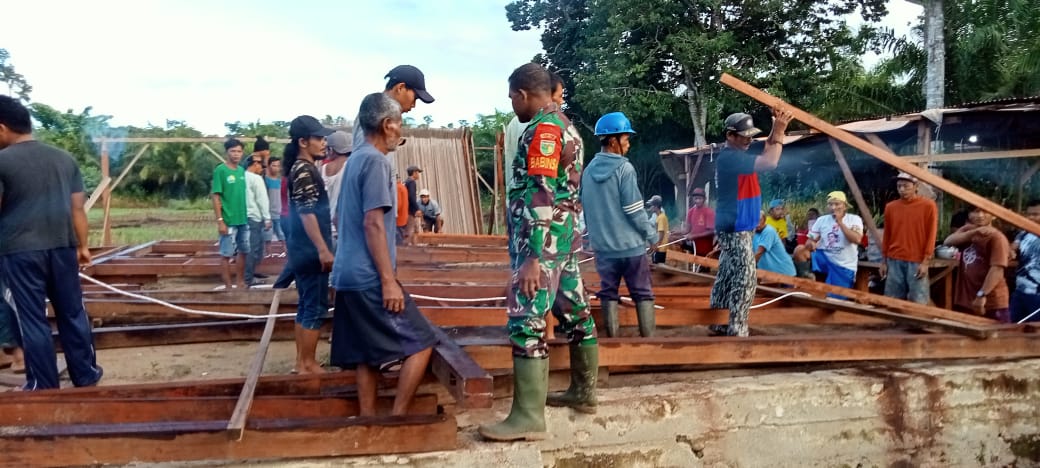 Babinsa Koramil 1705-03/Kwatisore Bantu Bangun Rumah Warga di Kampung Wami