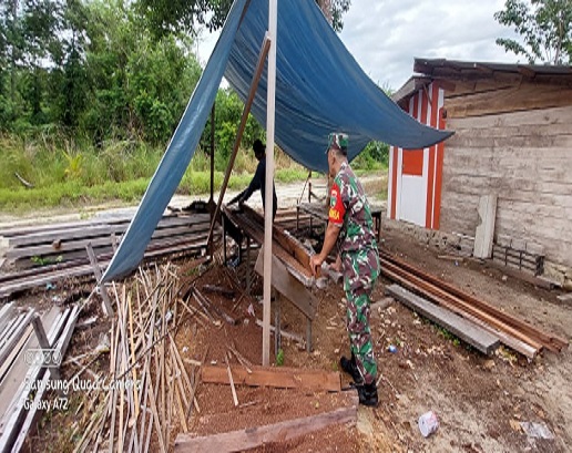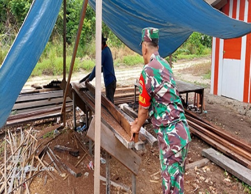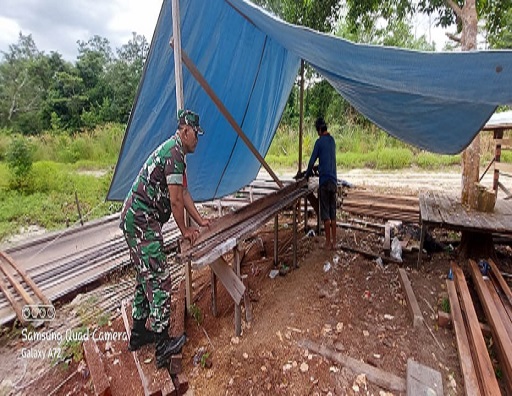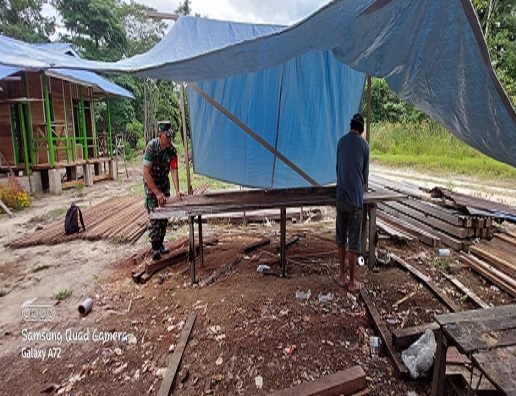 Nabire, Dalam memantau perkembangan di daerah binaan, Babinsa Koramil 1705-03/Kwatisore, Sertu Aswidi, membantu masyarakat dalam melakukan perehaban rumah atau tempat tinggal Bapak Albert di Kampung Wami, Distrik Yaur Kabupaten Nabire, Papua Tengah.