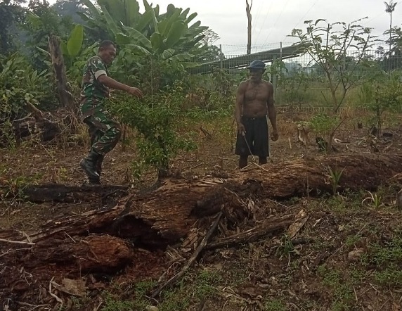 Nabire, Babinsa Koramil 1705-03/Kwatisore, Serka Sigit bersama warga binaan membuat lahan kosong menjadi lahan produktif untuk dapat mendongkrak perekonomian warga binaan di Kampung Yaur, Distrik Yaur, Kabupaten Nabire, Senin (13/02/2023).