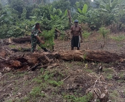Babinsa Koramil 1705-03/Kwatisore Olah Lahan Bersama Warga Kampung Yaur