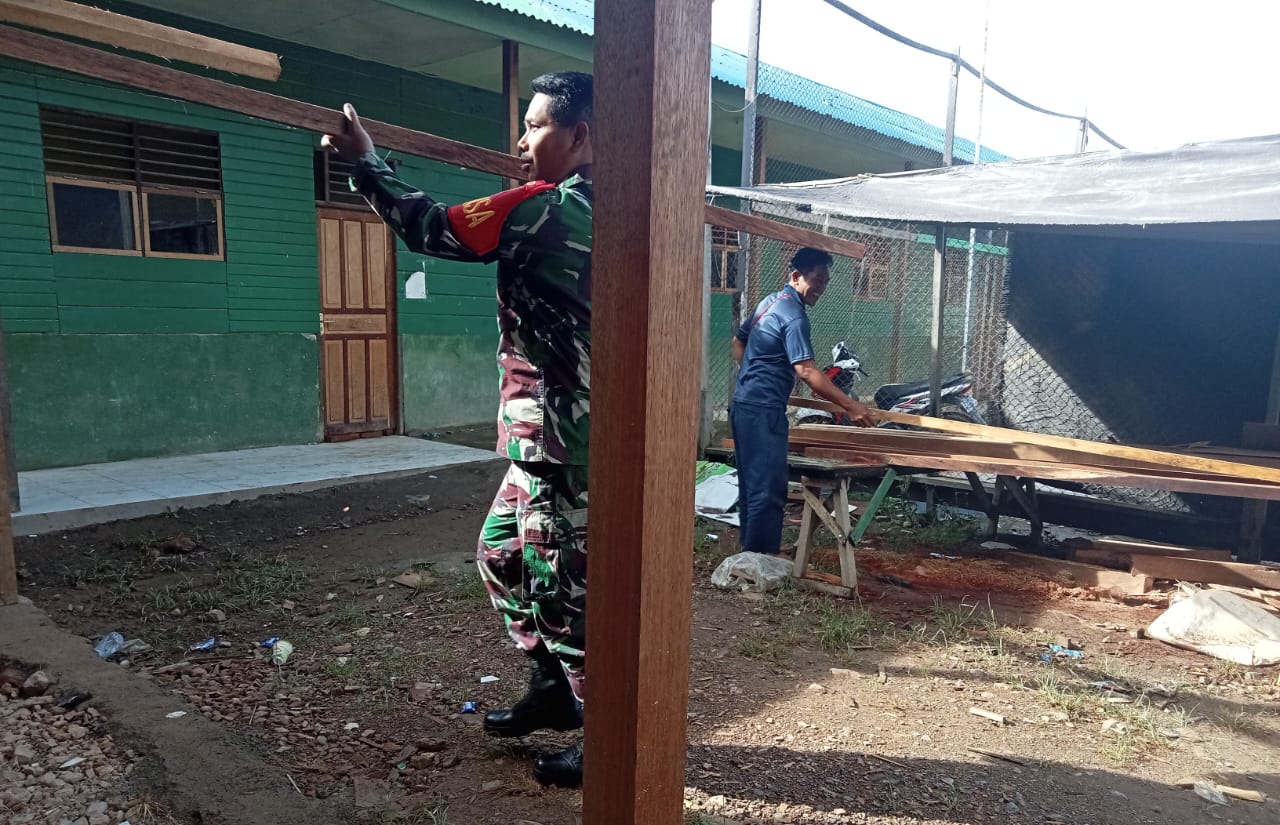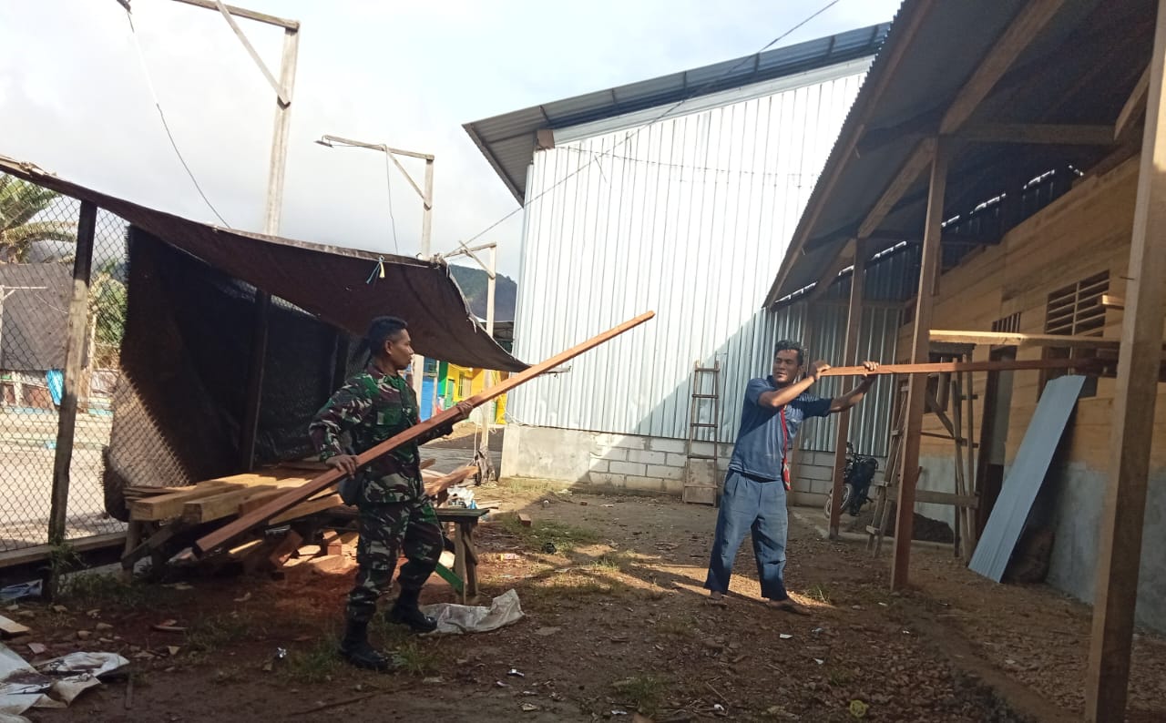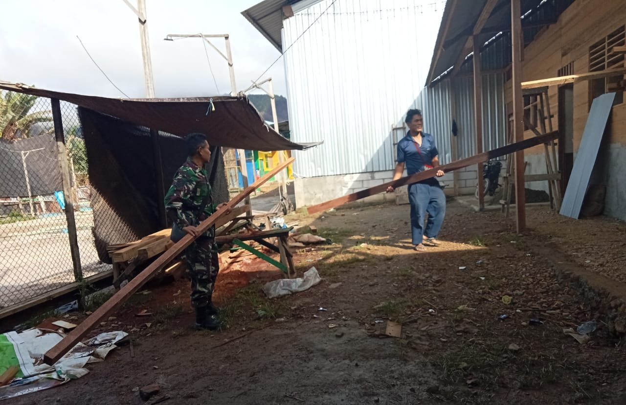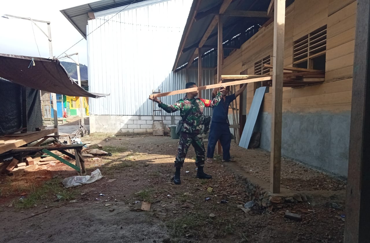Dogiyai, Sebagai wujud kepedulian kepada masyarakat di wilayah binaannya, Babinsa Koramil 1705-04/Moanemani melaksanakan karya bakti pemasangan plafon SD Yapis Al Kautsar Dogiyai, Senin (01/01/2024).