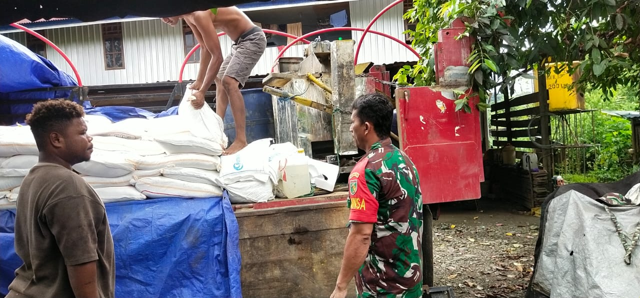 Bapak Melkisedek Tagi mengucapkan terima kasih kepada babinsa yang mana telah meluangkan waktu untuk membantu menurunkan pakan ternak milik kami. Harapannya semoga hubungan kebersamaan ini tetap terjaga.